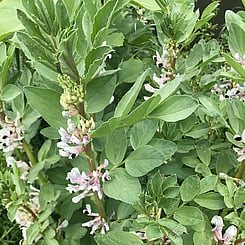 Faba Beans are an erect, tall crop of 1 - 2.5 m and have the ability to tiller. Depending on variety 1 - 3 tillers are common. The plant has a deep taproot with abundant of feeder roots which fix nitrogen to the soil. Flowering begins at 20 cm in height and grows in clusters of 3 - 8, with each flower cluster producing 1 - 5 pods. As the crop ripens,s it turns black, with the seed pods becoming ripe from the lowest and working up the stem to the top.